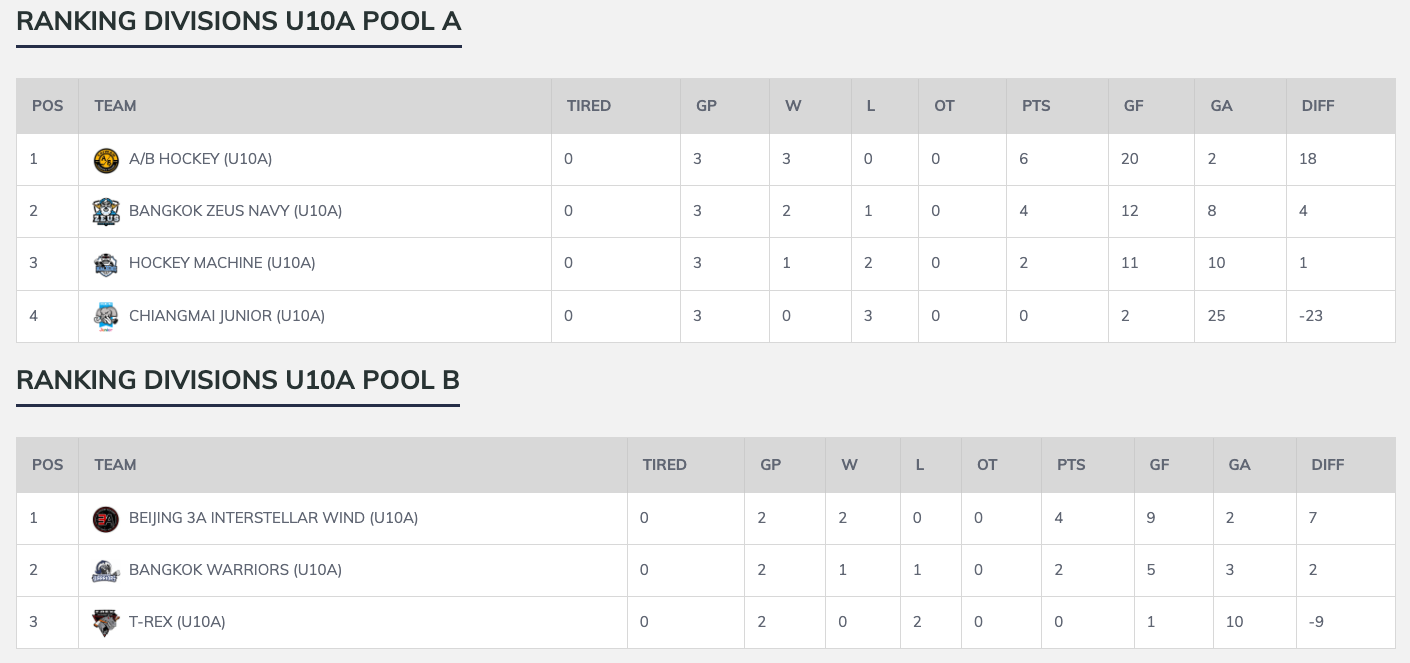 TEAMS DIVISIONS U10A