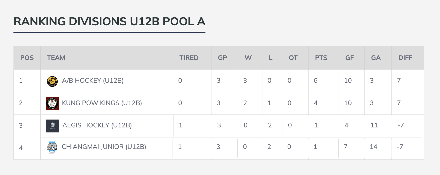TEAMS DIVISIONS U12A