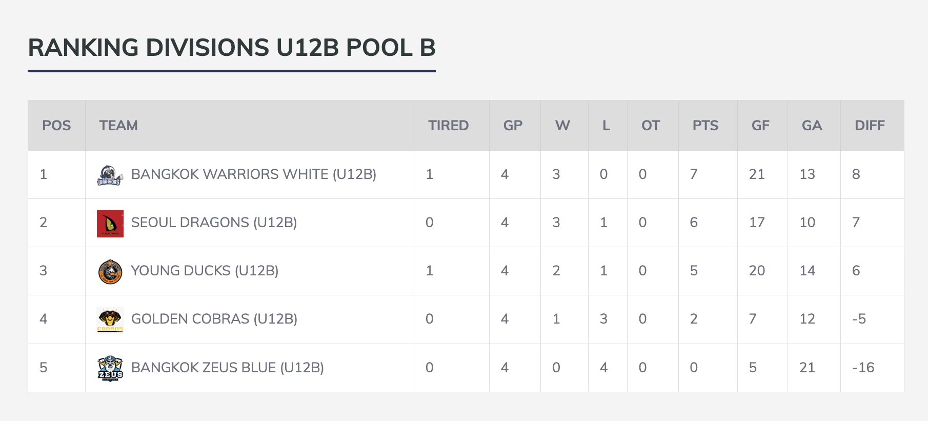 TEAMS DIVISIONS U12B