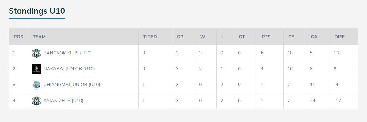 Standings U10